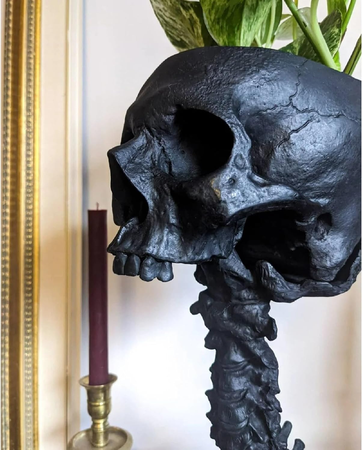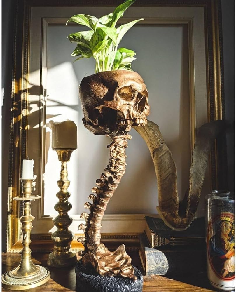 Realistic & Horror Skull Decor: Skull cool planter pot adopts pure hand-carving technology, exquisite workmanship, lifelike, nice gothic home decor and halloween decor! You will be shocked by its exquisiteness! It can also be used for skull candy bow, Halloween skeleton head decor, Halloween decorations indoor and outdoor!